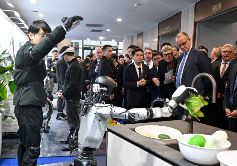 ▲2026年2月26日,德国总理默茨率近30位德国经济界代表组成的高级别代表团,在浙江杭州参访中国机器人企业宇树科技。中新社记者王刚 摄