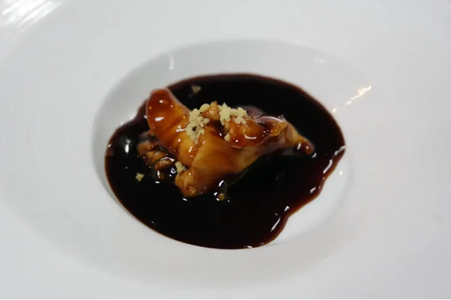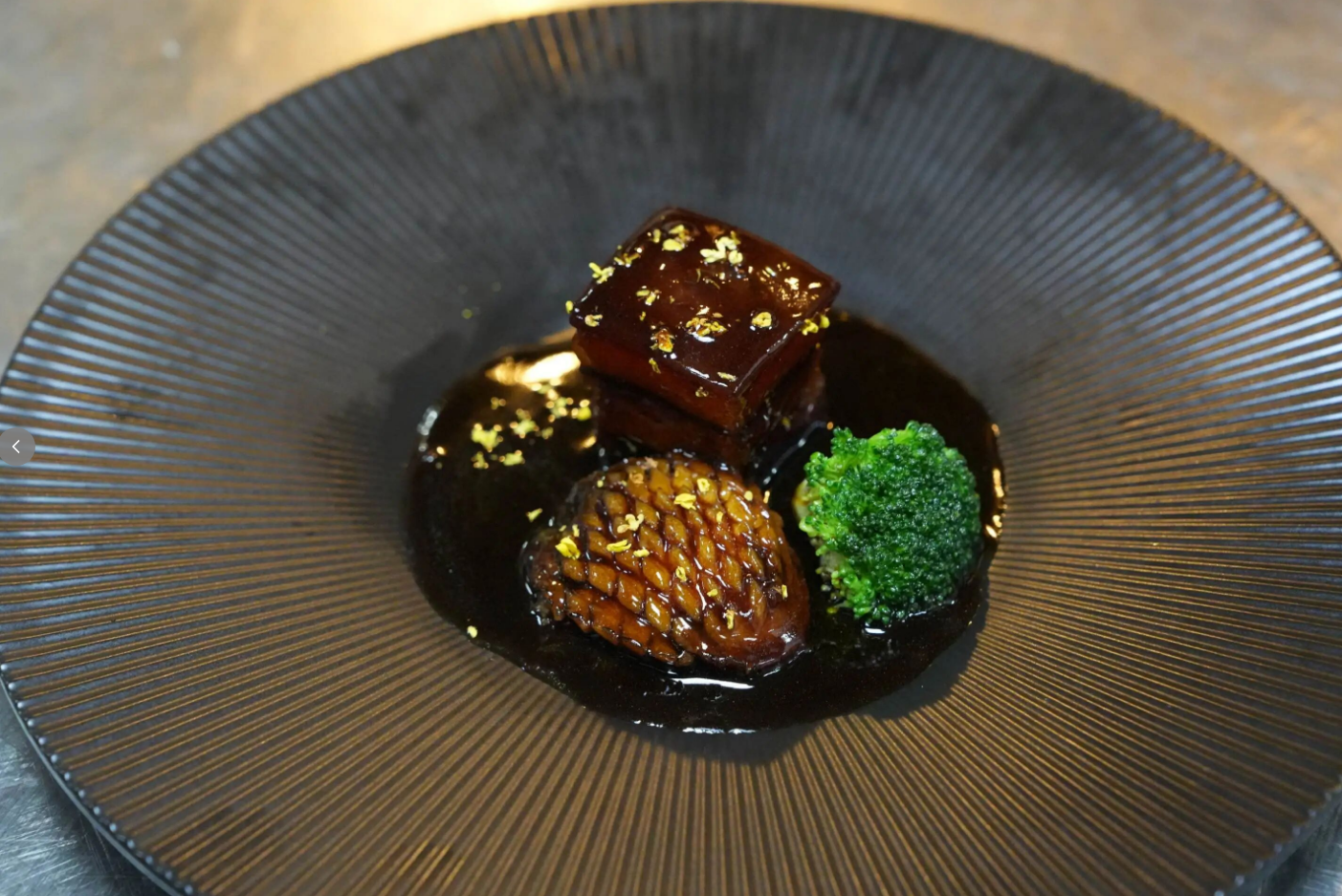 此次午宴中,为了让这道菜更具融合特色、口感层级更丰富,张坚还在传统东坡肉基础上加入了两位新角色——鲍鱼和桂花。