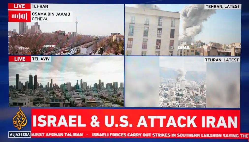 ▲图为2月28日拍摄的半岛电视台直播画面,显示美国与以色列对伊朗发起联合军事行动。(图片来自新华社)