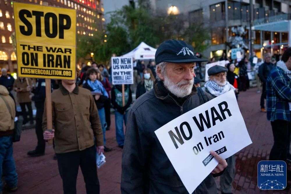 ▲3月2日,人们在美国加利福尼亚州旧金山参加集会,抗议美国对伊朗发动军事打击。图/新华社