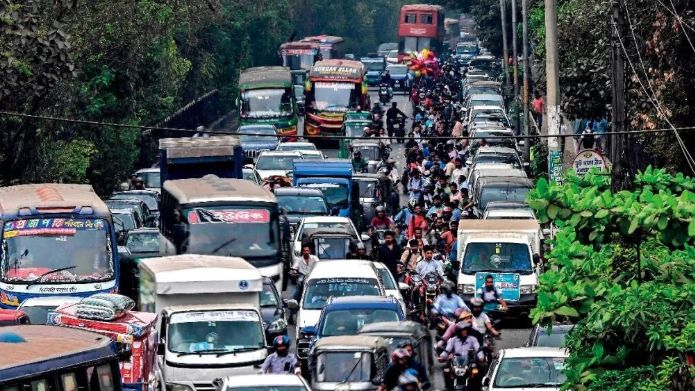 ▲ 3月8日,孟加拉国首都达卡,大批车辆排队等待加油。(图片来自中国新闻周刊)