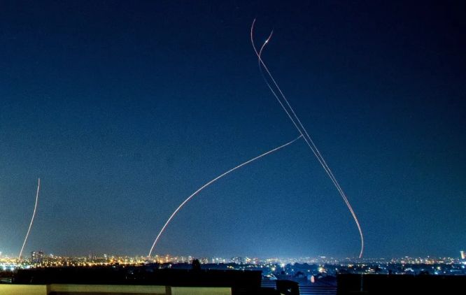 ▲3月3日,以色列特拉维夫上空,以色列防空系统拦截伊朗发射来的弹道导弹。(图片来自中国新闻周刊)