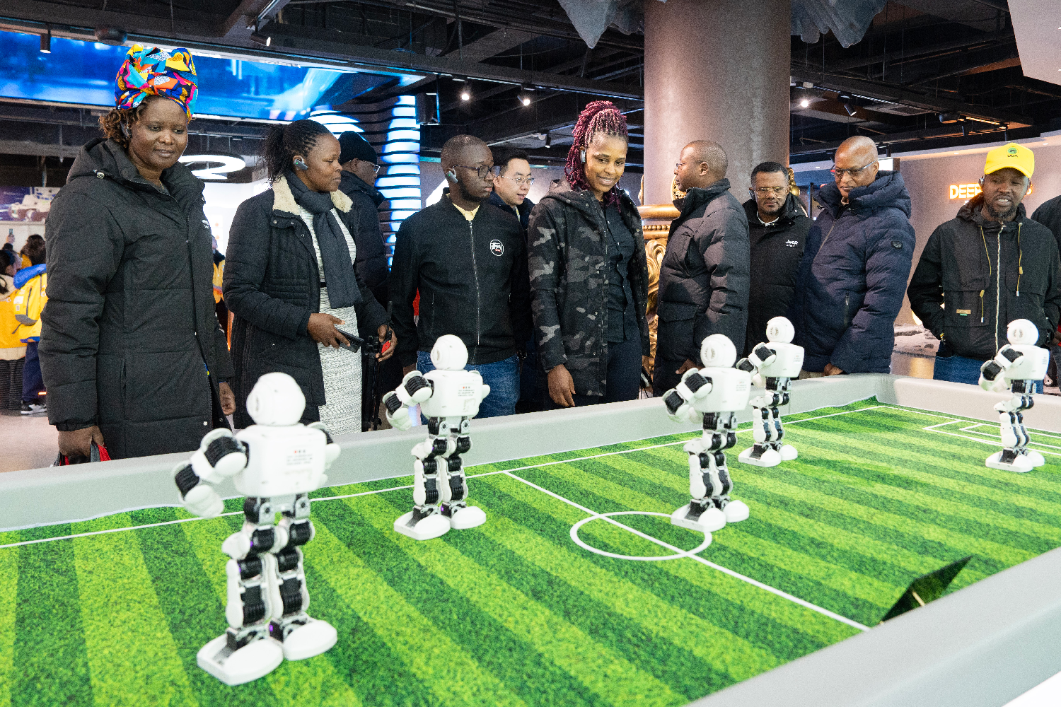 ▲2026年2月2日,肯尼亚联合民主同盟干部考察团成员在杭州观看小型机器人舞蹈。(图片来自中新社)
