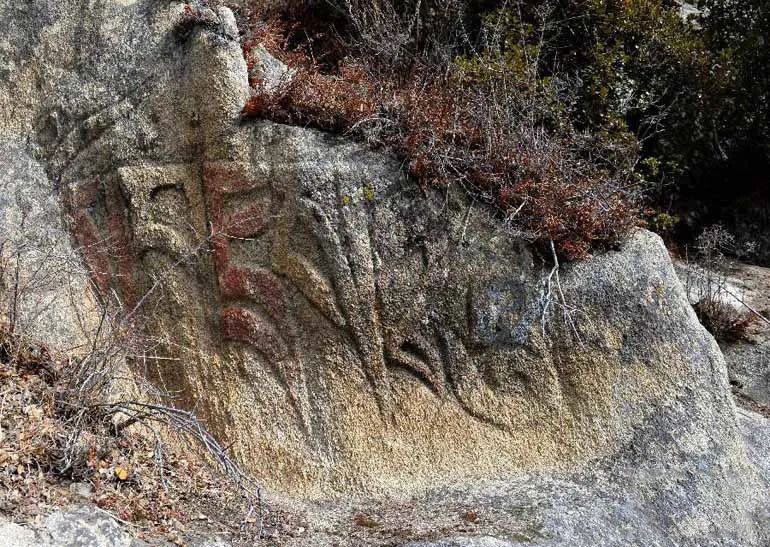 ▲西藏林芝市工布江达县太昭村唐蕃古道遗址中拍摄的藏文石刻。(图片来源:新华网)