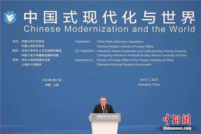 ▲2023年4月21日,“中国式现代化与世界”蓝厅论坛在上海“世界会客厅”举办,沙拉夫出席论坛开幕式并致辞。殷立勤摄