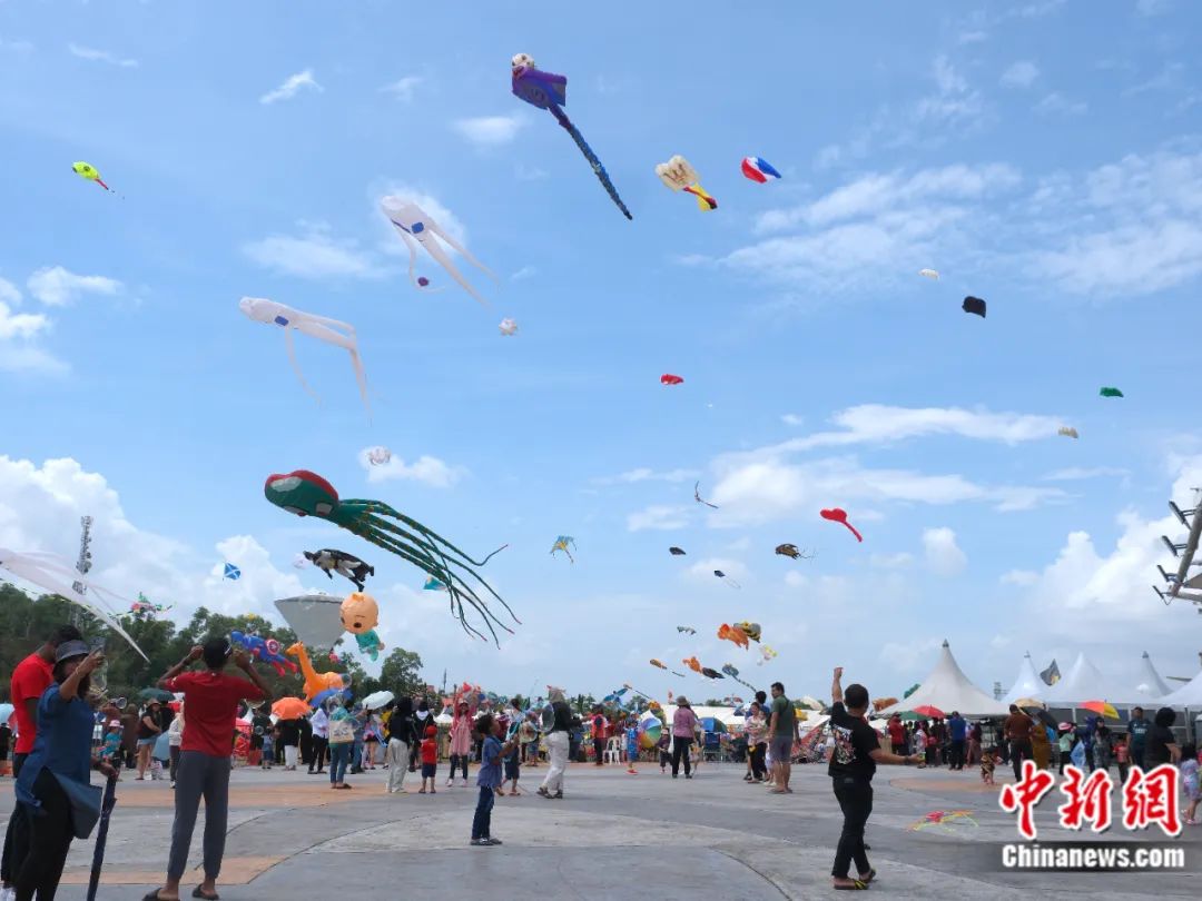 ▲2024年3月,马来西亚柔佛州巴西古当市举办国际风筝节,30余个国家和地区的130多名选手用各式风筝“扮靓天空”。陈悦 摄