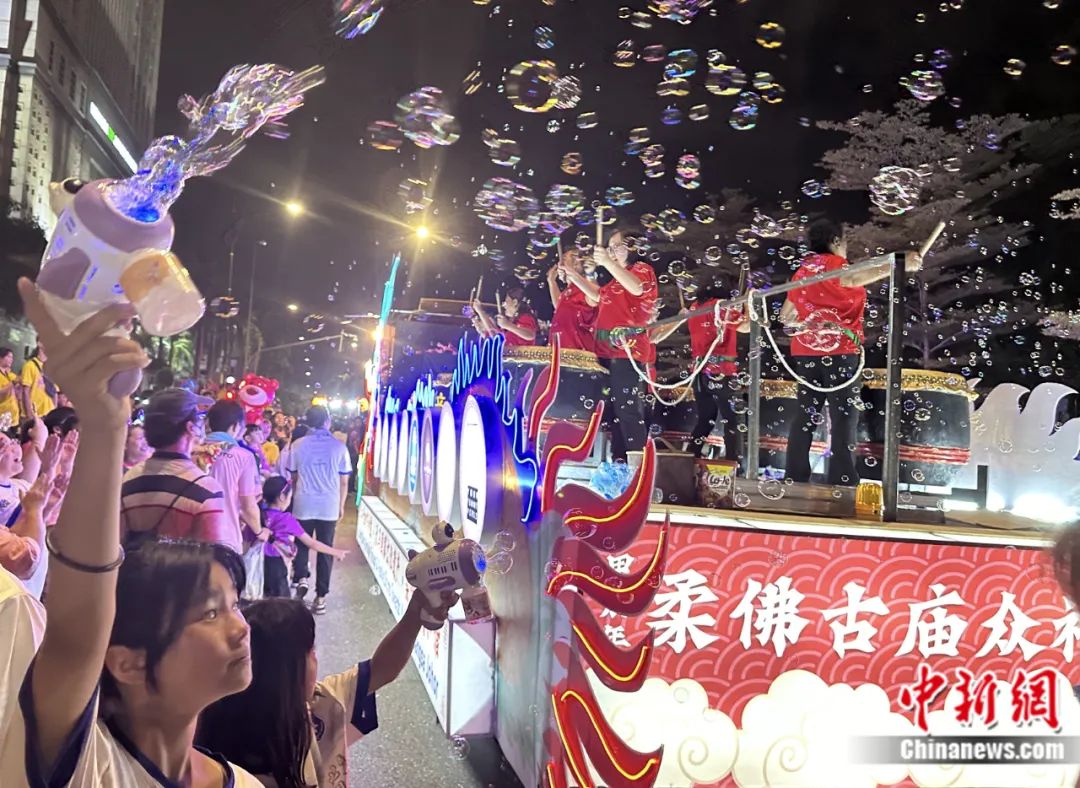 ▲2024年3月1日晚,已有百年历史的马来西亚柔佛古庙游神举行夜游活动。图为马来西亚华人著名的二十四节令鼓表演。陈悦 摄