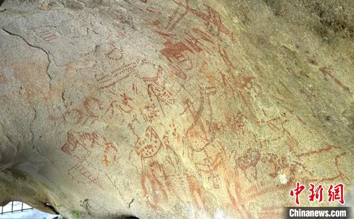▲新疆哈巴河县多尕特洞穴彩绘岩画。哈巴河县融媒体供中新网