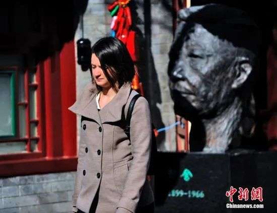 ▲2015年2月11日,外国参观者参观位于北京的老舍故居。(资料图)中新社记者 陈钢 摄