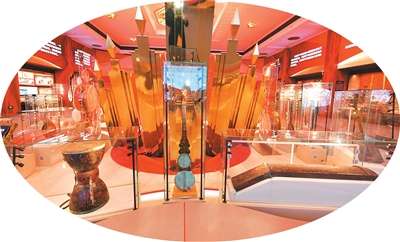 ▲唐代文成公主带到吐蕃的琴(右)与长鼓(左)。张昊摄