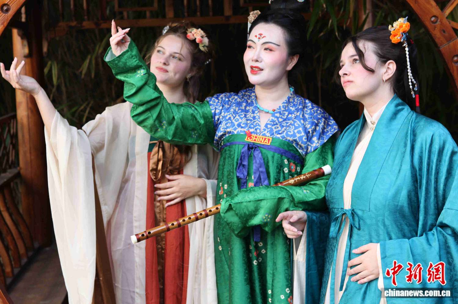 ▲当地时间2025年9月21日,中秋游园会在荷兰海牙举行。图为荷兰汉服社成员(居中)与身穿汉服的荷兰观众合影留念。中新社记者 德永健 摄