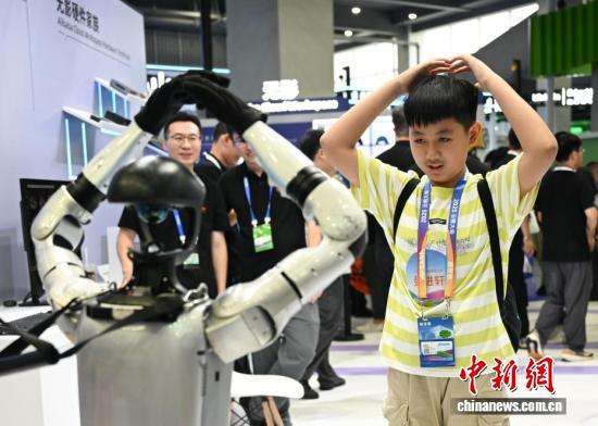 ▲2025云栖大会上机器人模仿参观者的动作。图自中新网