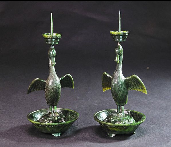 ▲清代碧玉海晏河清烛台。(图片来自《中国文化报》)