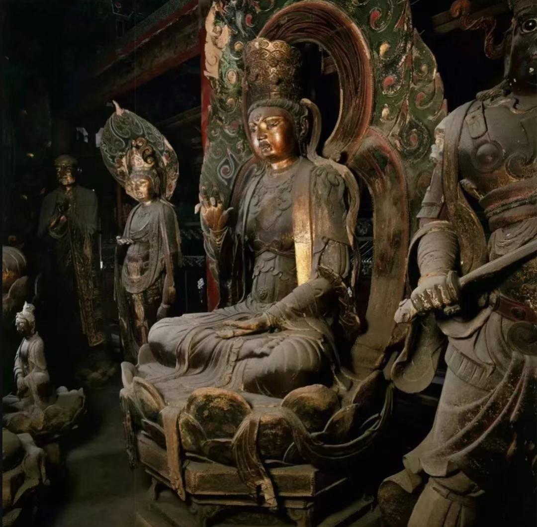 ▲山西省大同市辽金古刹大同华严寺内的菩萨像面部涂金。(图片来源:《中国大同雕塑全集▪寺观雕塑卷》)