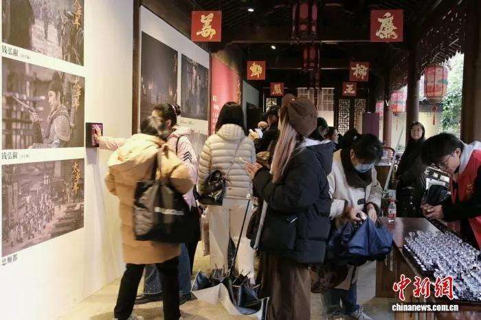 ▲2026年1月1日,电视剧《太平年》主题特展在杭州钱王祠内举行。图为年轻人到场观展。(图片来自中新社)