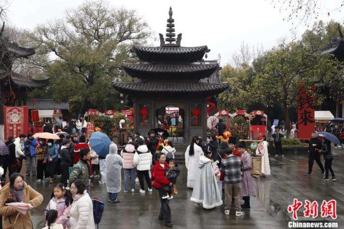 ▲2024年2月24日,浙江杭州,钱王祠内游人众多。(图片来自中新社)