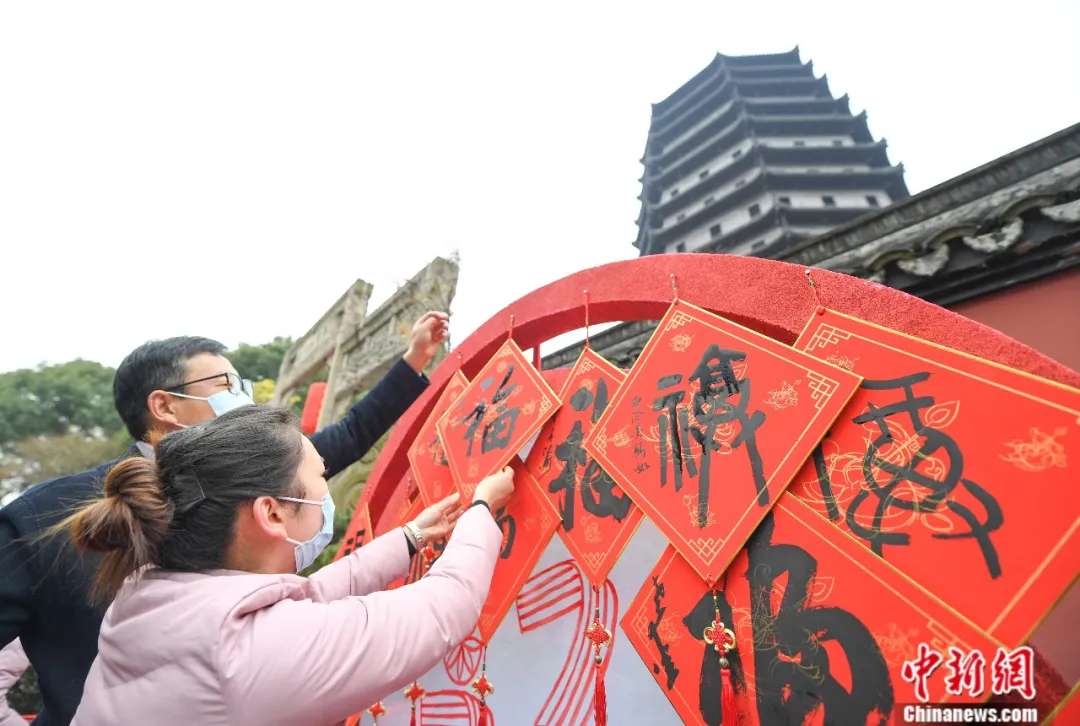▲2022年1月1日,人们在杭州六和塔下“晒福”。六和塔始建于宋开宝三年(970年),塔基原址系吴越王钱弘俶的南果园。钱弘俶舍园建塔原为镇压江潮。中新社记者王刚 摄
