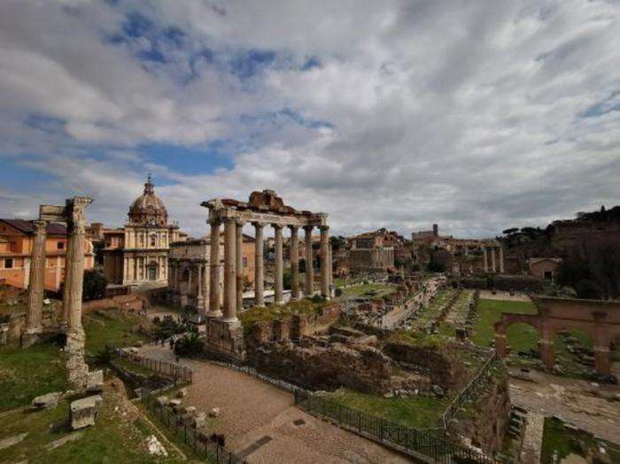 ▲意大利古罗马广场。这片废墟中包含神庙、政府机构、剧场、教堂、商场等遗迹,罗马城最早的建筑很多位于此地,包括女灶神维斯塔的神庙。央视记者 张晓鹏 摄