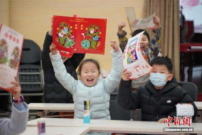 ▲2021年2月4日,中国传统节日——小年。图为制作完年画的小学生兴奋不已,等待老师发灶糖。中新社记者 阚力 摄