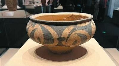 仰韶文化距今约7000年至5000年,是新石器时代分布广泛的一种彩陶文化,最早发现于河南三门峡仰韶村。三门峡庙底沟遗址出土的仰韶文化彩陶盆,器形规整大方,器表以黑彩绘典型的庙底沟风格勾连纹,纹饰以圆点、弧线及弧边三角等元素连续组合而成,线条流畅,富有韵律感。勾连纹作为庙底沟类型彩陶的代表性纹样,由早期写实的鸟纹逐步简化、抽象演变而来。郑州西山古城遗址出土的仰韶文化彩陶钵,造型圆浑稳重,器表施乳白色陶衣,并以黑彩绘连续而工整的网格纹。据介绍,此类纹饰可能源于对渔网、编织物等日常用品的视觉提炼,既反映了当时的生产生活形态,亦可能承载着先民对秩序与结构的原始认知。
