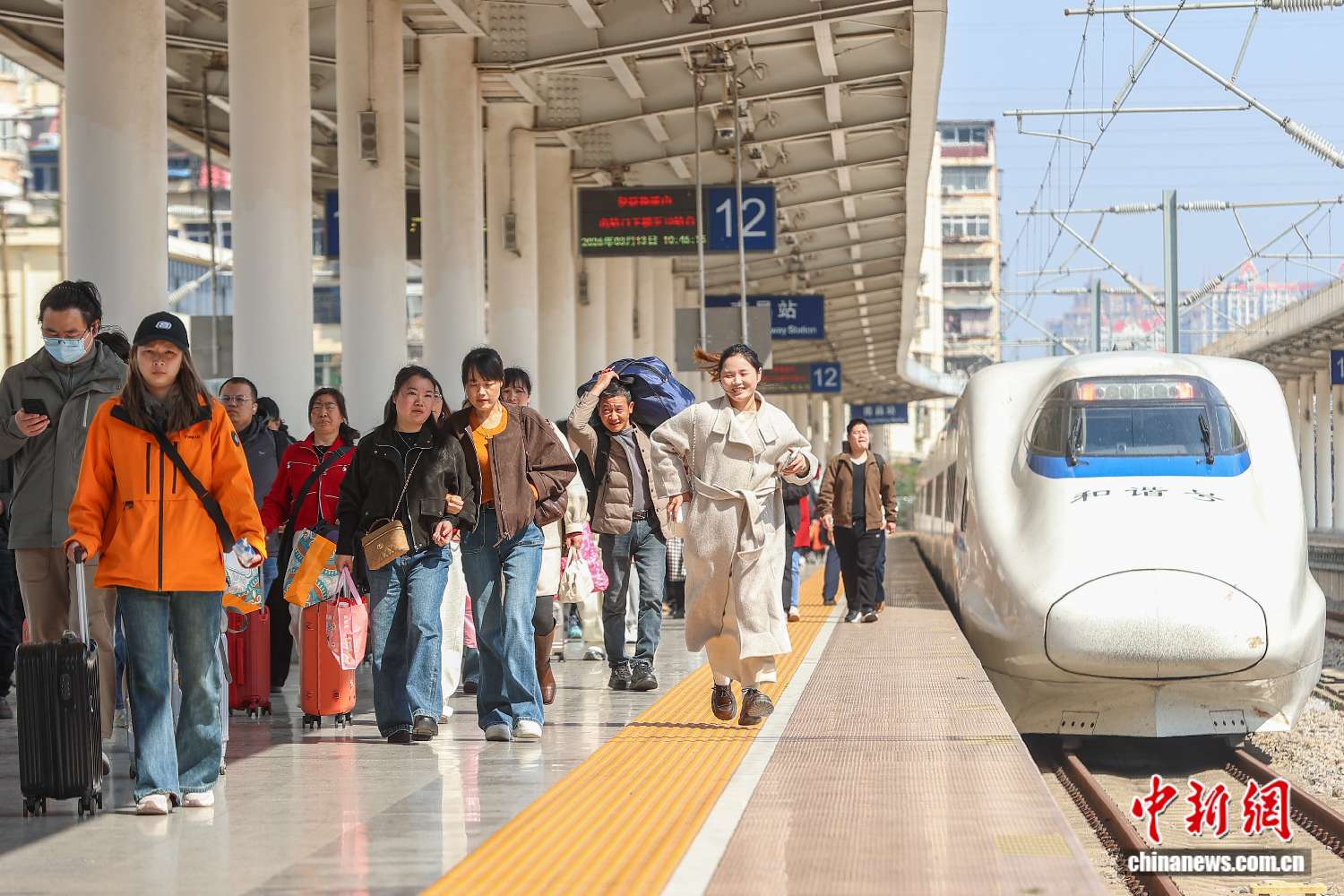 ▲2026年3月13日,旅客在江西南昌站出行。(图片来自中新社)