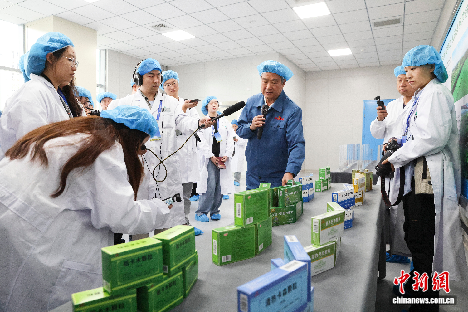 ▲2025年9月8日,在位于新疆乌鲁木齐的新疆华源集团银朵兰药业股份有限公司,董事长李俊讲解产品。(图片来自中新社)