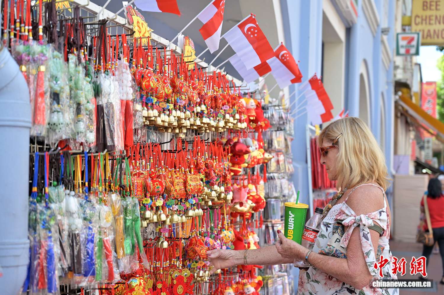 ▲当地时间2020年1月5日,游客挑选新春装饰。随着春节临近,新加坡牛车水变得年味十足。(图片来自中新社)
